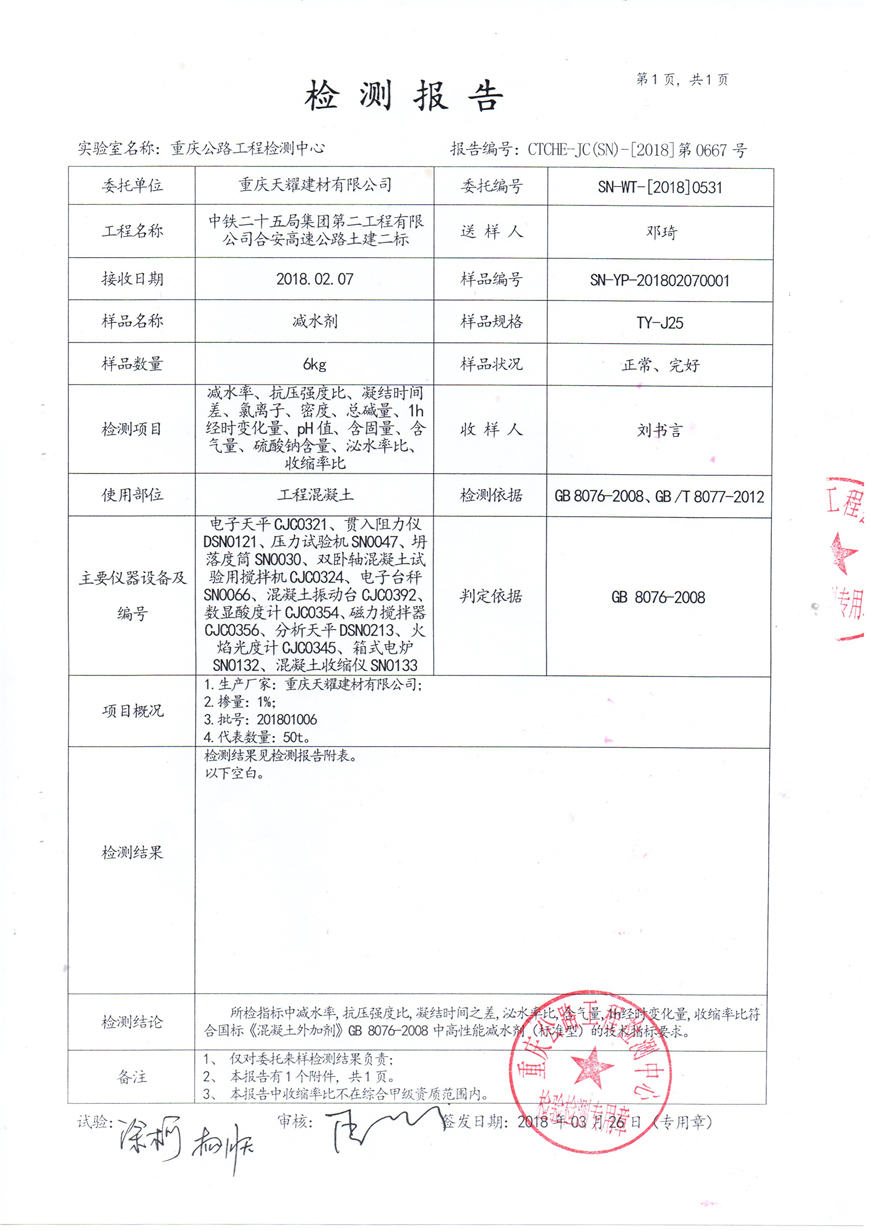 減水劑檢測報告
